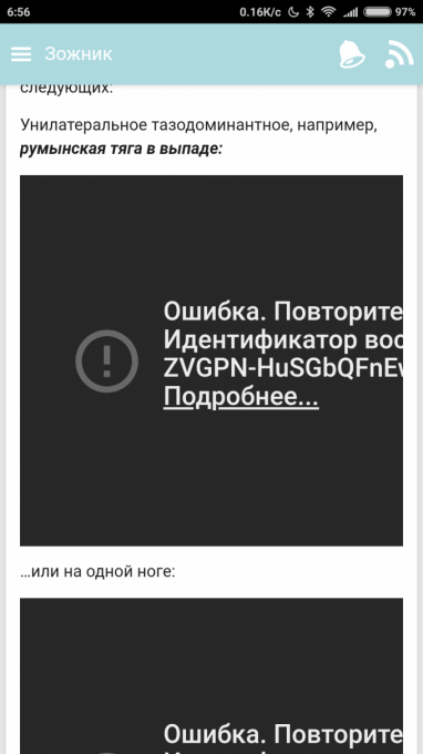 Видео в одной из последних статей в приложении