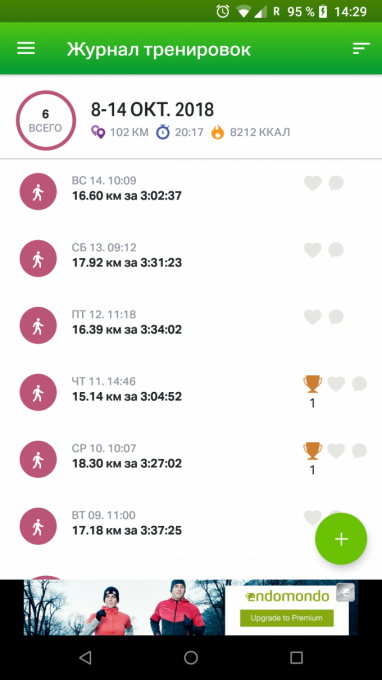 За прошедшую неделю 102 км за шесть раз. И один выходной на неделе.