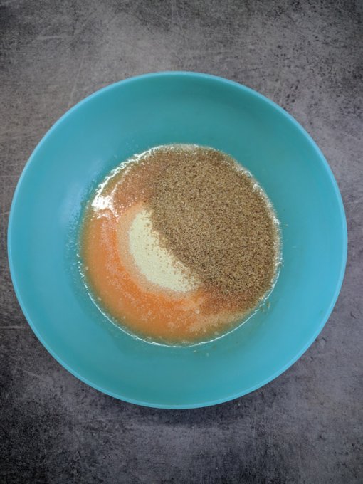 В отдельной посуде смешайте яйцо, пол столовой ложки оливкового масла, щепотку соли, сахзам (у меня стевия).