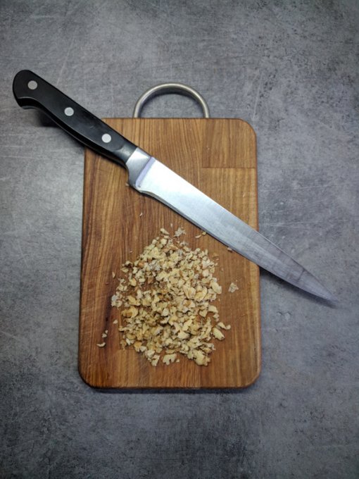 Грецкие орехи порубите ножом. Нужна не ореховая паста, а мелкие кусочки. Морковка и орехи дополняют друг друга. Кусочки орехов делают текстуру кексов богаче.