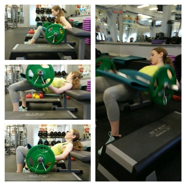 Вот, кстати, проблема была - как делать ягодичный мостик со штангой без партнера, который тебе штангу сверху положит? Когда вес штанги 40-50 кг, самостоятельно девушке это сделать очень сложно. И тут вчера наткнулась на вот такой способ - платформы!. Девушка чертов гений) Попробовала вчера так сделать - отлично получается.