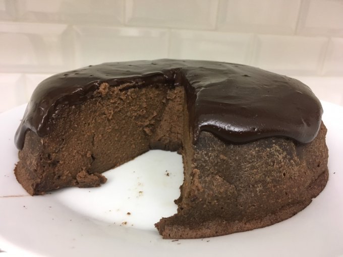 Из 30 г. какао, 80 г молока и фит парада (2 мерные ложечки) сварить глазурь, полить сверху кекс, охладить.