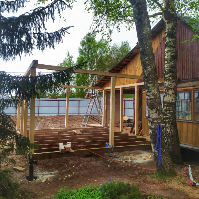 День пхд. :) прибрался в "офисе", уход за инструментом, вывезли мусор, покрасила жена пол в беседке, я прикупил 8 палок бруса, строгаю теперь. Дождь чутка пытается мешать.