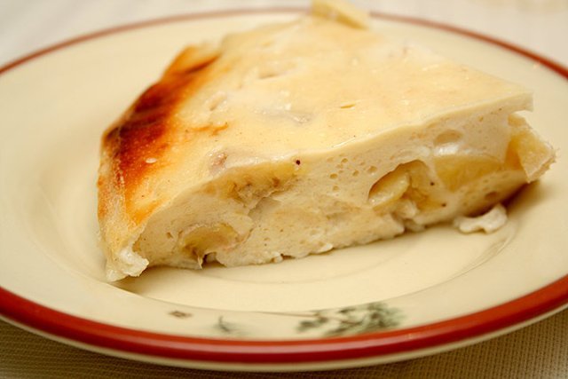 Отделить белки от желтков. Взбить в емкости погружным блендером творог с молоком, бананами, пряностями и желтками. Масса получается как густая сметана. Отдельно взбить белки до пиков. Этим же венчиком или ложкой ввести белки в творожную массу. Выложить в силиконовую форму и выпекать в разогретой до 160-170 градусов духовке около 35 минут. Полностью остудить, при подаче можно полить мёдом!