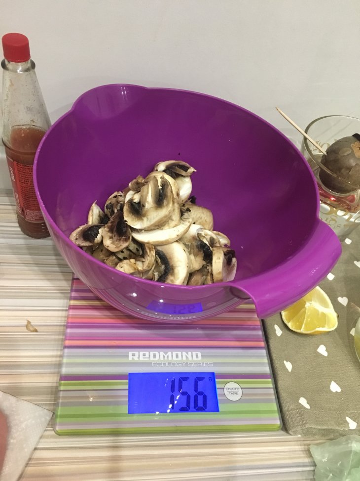 Шампики: намыла, нарезала. взяла только шляпки