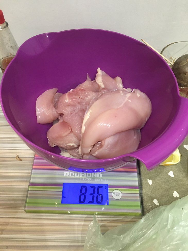 Курогрудь: намыла, вытерла взяла корень имбиря, чеснок, соевый соус, соус Чили залила все это в курочку и убрала настаиваться