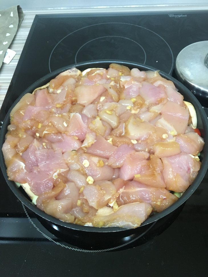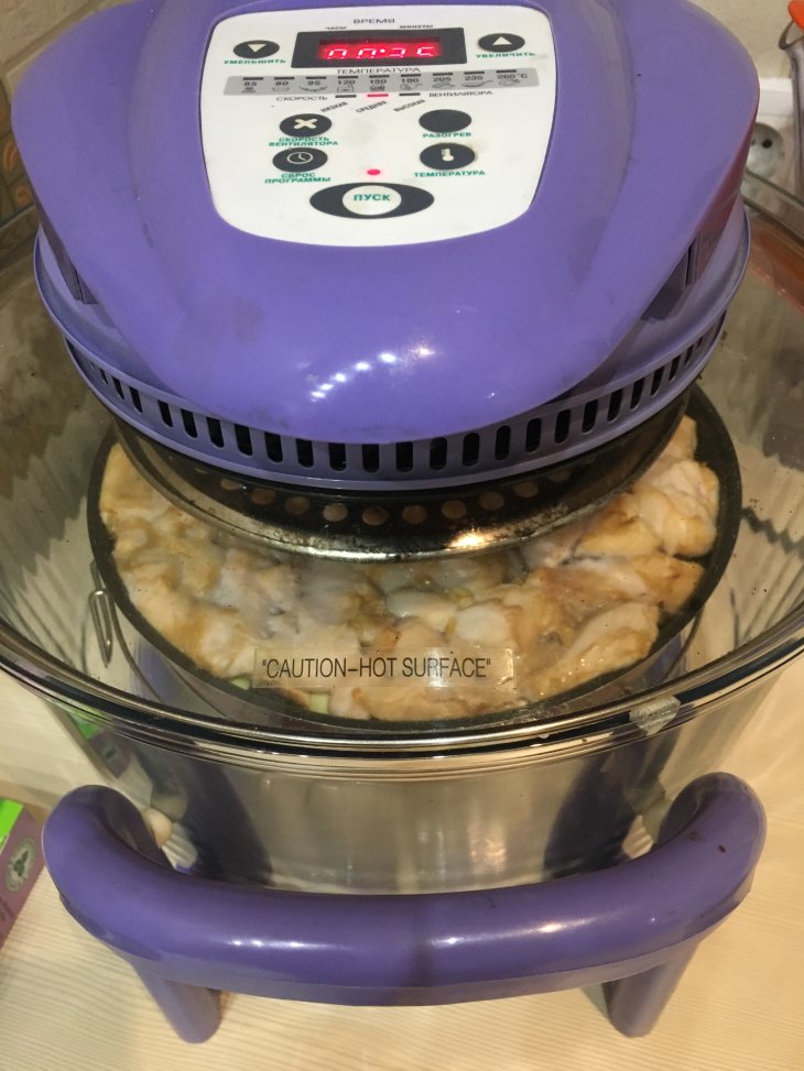 Выложила сверху курочку и поставила в аэрогриль.