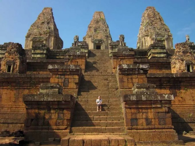 Сегодня прошагала мимо East Mebon (12 км) - храма 10г века, стоящего на искусственном острове водохранилища, которое высохло к нашим дням.