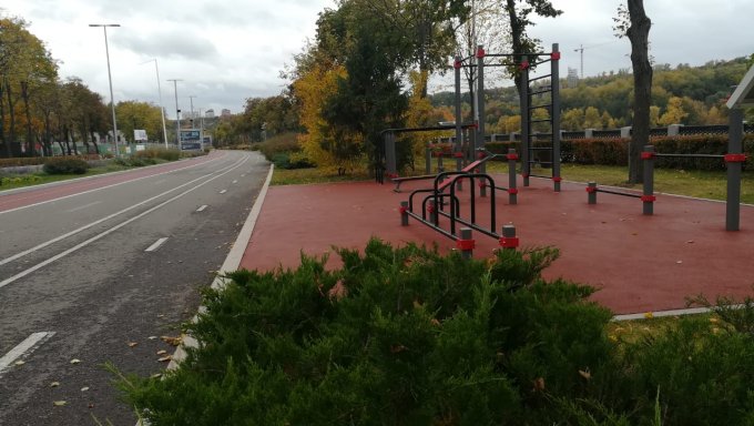 Сегодня днем была благоприятная погода для занятий на свежем воздухе. Изредка моросил совсем небольшой дождик, температура еще позволяла бегать в шортах и без головного убора. Моя любимая площадка для воркаут.