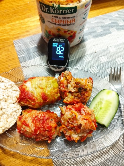 Сегодня мне хреновенько... Хлеб бородинский, другого дома не оказалось. Не думала, что будет такая реакция... Но я продолжаю борьбу и верю в лучшее. Пришла с работы, планировала съесть 2 яичных белка, но организм сказал, что хочет сильно жрать. Поэтому голубцы. Тестирую хлебцы вместо хлеба. Посмотрим что получится