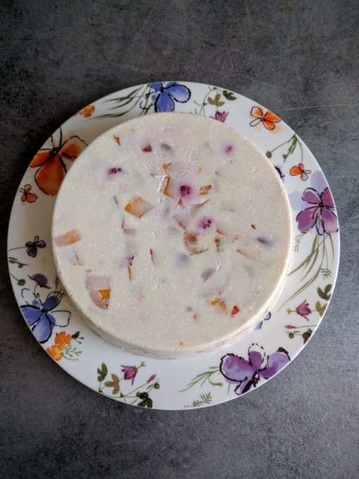 белковым завтракам. Творожно-молочное желе с малиной и персиками.