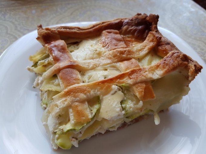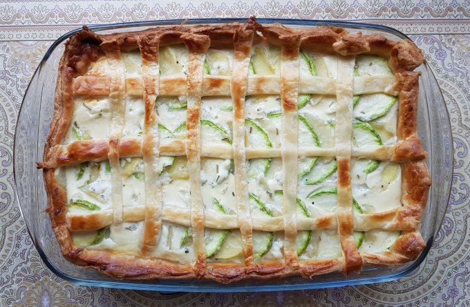 к тарту. Тесто было покупное, слоёное дрожжевое, в начинке был