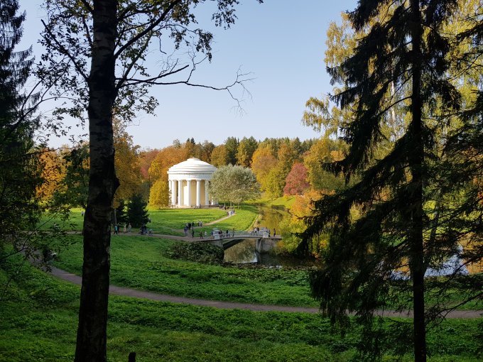 Сегодня почти весь день посвятили любованию природой и неспешным прогулкам. Утром поехали в Павловск, чтобы солнечный и теплый выходной провести на природе, насладиться тишиной и покоем. Всего 20 минут на электричке и вот он, парк, а перед ним... очередь. Очередь была длинной и стоять бы нам там около часа, но добрая бабуля из местных сказала, проходя мимо, что "справа есть другая касса". Мы и еще несколько ловцов удачи послушали бабушку и отправились на поиски кассы "справа". Кассу мы не нашли, зато нашли открытую калитку, ведущую в парк и оказались в парке без очереди и... бесплатно. Мы были готовы заплатить, честно, но вторая касса не нашлась, а идти из принципа назад и стоять там час было уже не очень умно. Вход еще рано утром и перед закрытием бесплатный, так что там в целом там предусмотрена схема бесплатного прохода.