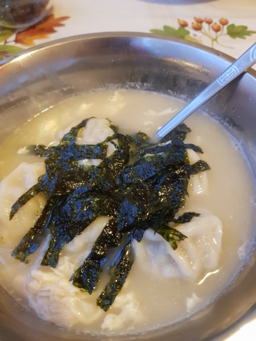 Подъедаем и экзотические запасы, приготовили суп с пельменями из корейской кухни по рецепту с упаковки призового бульона. Заодно пригодились и призовые водоросли. Вообще зарождается план на день рождения сделать доставку из корейского ресторана, но заказать по большей части не блюда, а продукты. Там дешевле брать многие соусы, чем в интернет-магазинах, удивительно. И потом уже сможем устроить дома пир в стиле "Лучше сами". Полистала уже сайты с рецептами на корейском, очень жалею, что поваренную книгу себе привезла из Кореи. Думаю для развлечения все же взять пару базовых компонентов и потом повторить несколько позиций из меню корейского ресторана, просчитав домашнюю стоимость.)