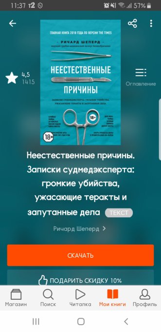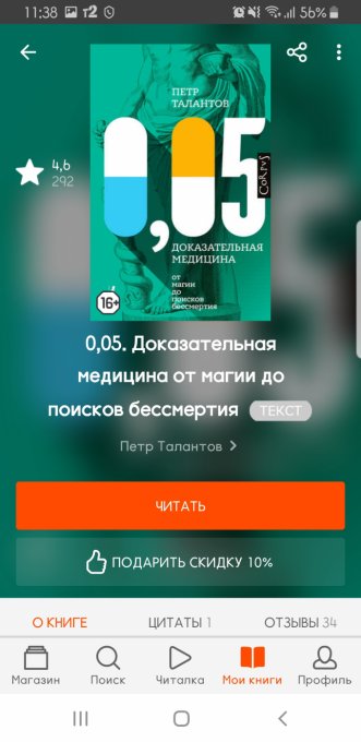 Или же по результатам активации подарочного сертификата на книги в приложении: