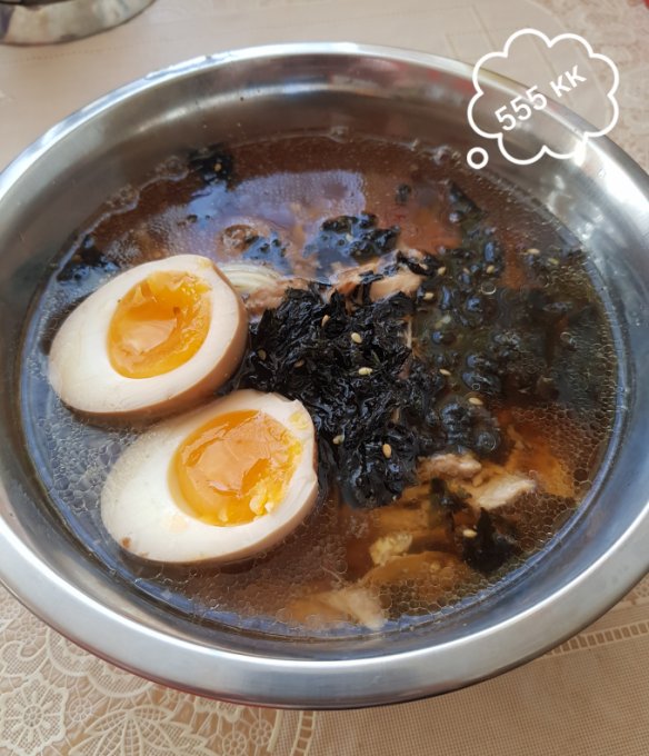 коллегой из Кореи водоросли с кунжутом. Суп калорийный, зато сытный