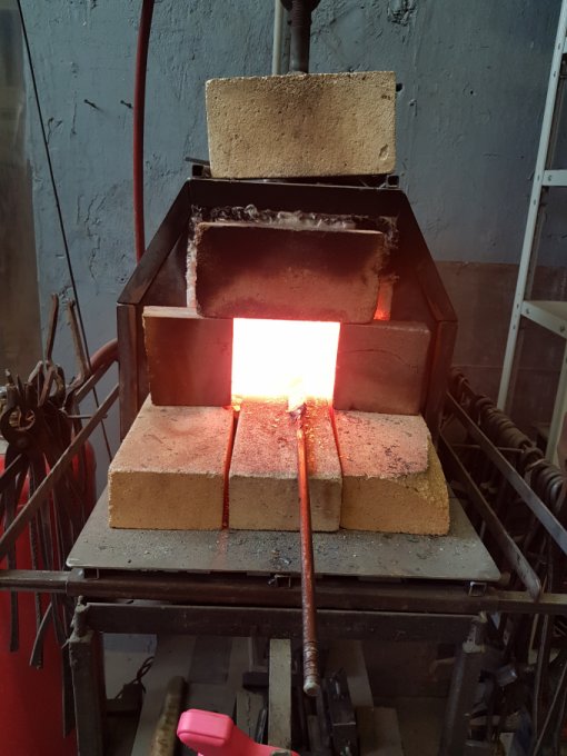 Сил у меня маловато, но проблема была даже не в силе - я просто побаивалась лупить молотом. Кузнец помогал мне, но не делал за меня совсем уж все. В целом я сделала 80% работы сама, очень рада этому. Натерла мозоль молотом, получила пару мелких ожогов от летящей окалины, но фартук и очки в целом хорошо защищали.