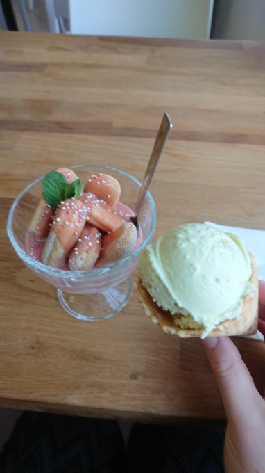 | Мороженное пломбир с кленовым сиропом и грецким орехом |
