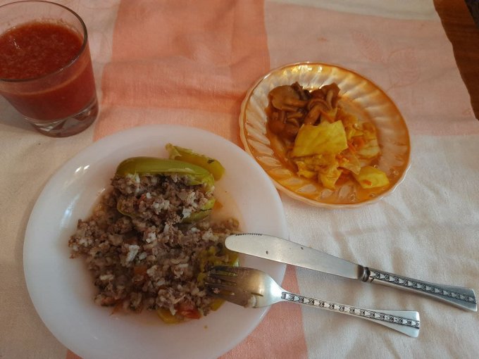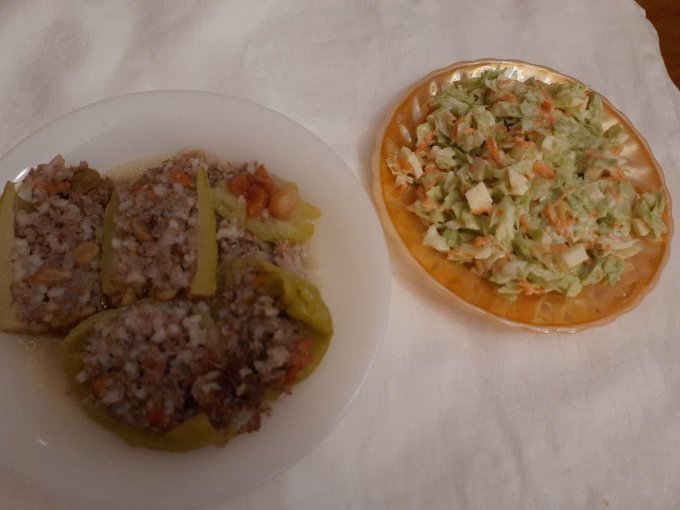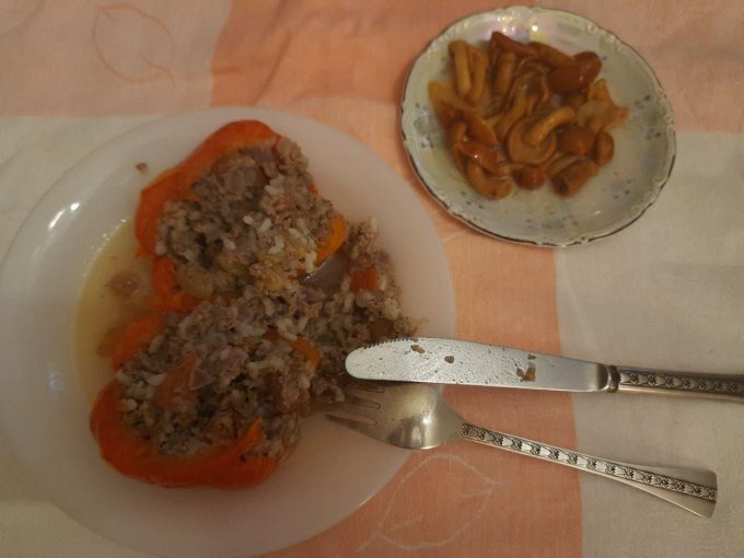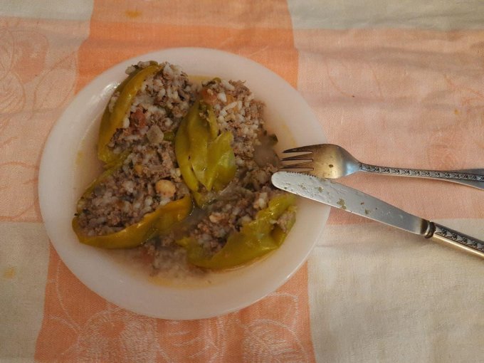 | Перец, фаршированный мясом, рисом, изюмом и овощами |