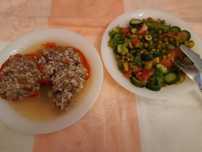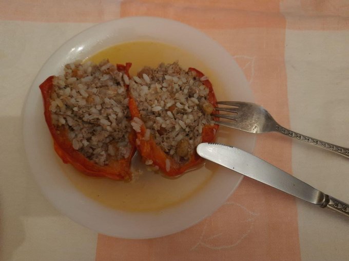 | Перец, фаршированный мясом, рисом, изюмом и овощами |