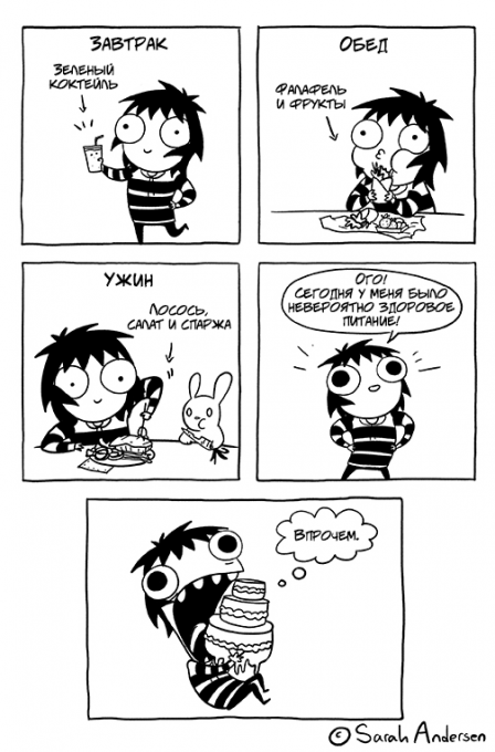 Если мне удастся поесть меньше, чем на 2000 калорий, я буду очень довольна и не стану себя ругать, пожалуй.