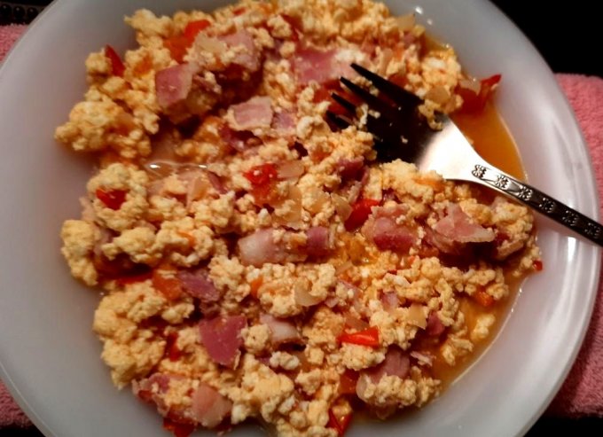 Сегодня на завтрак сделала кусочки бекона с омлетом. Вышло очень вкусно. :ah: