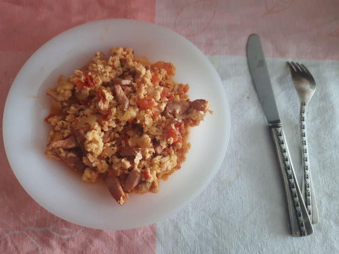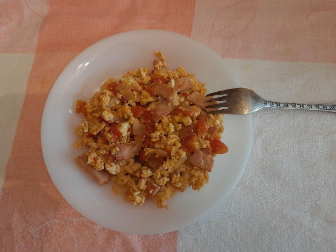 Сохраняется некоторая раздражённость, но состояние более терпимое, чем вчера. На завтрак был омлет с карбонатом и помидором...С утра уже что-то много съела всего, хотя и не хотелось совсем. Это меня успокаивает.