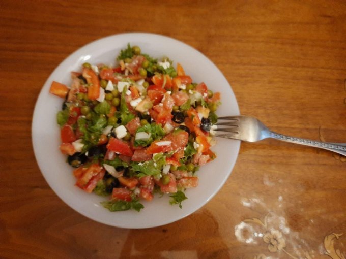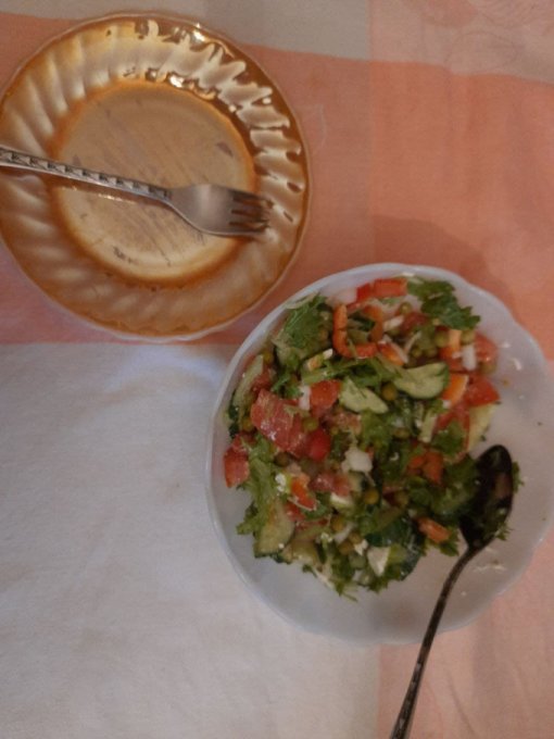 Депрессивное состояние, спать совсем не могу. Встала, немного побегала. Забыла записать за сколько, пробежала медленно 4 км. Долму и салат ела два раза, это не ошибка на фото.