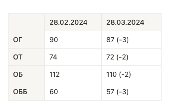 | Итого за день | 2309 | 1526 | 75 | 68 | 146 |