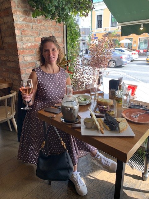 на террасе и при этом не на тротуаре (хотя на тротуаре тоже столики