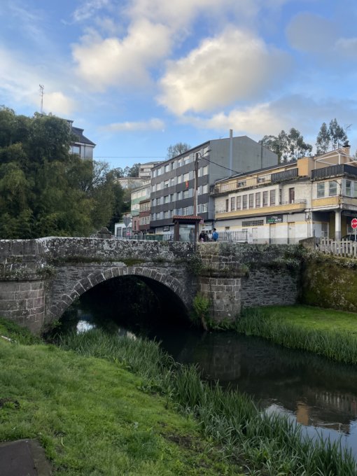 Поэтому накануне я нашла работающий магазин (тот на который я рассчитывала изначально оказался закрыт, хотя гугл об этом был не в курсе) и купила в дорогу булку, тортилью из картошки и хамон. Этим я позавтракала до дождя, потом часов в 12 съела бутерброд в баре по дороге, а потом еще один в баре уже километра за три до конечной точки. Туда рекомендуют заходить паломникам и хозяева действительно приняли меня с распростертыми объятиями, чуть ли под ручки проводили к столу, развесили ветровку и дождевик, принесли скамеечку чтобы я ноги положила. Это было очень трогательно и мило. Меня угостили фийоа - галисийским блином, а бутерброды принесли просто огромные с сыром и помидором, один я съела, второй не осилила и оставила про запас на случай если нечего будет есть вечером, хотя если честно после дня на дожде уже хотелось поесть горячего, а не одним чаем греться. Мне повезло и вечером таки открылся бар в деревне, в нем предлагалось на выбор одна из трех закусок и одно из двух горячих, все это было на галисийском и я ткнула пальцем наугад, в итоге на закуску у меня была лоханка макарон с томатным соусом, а на горячее лоханка свинины с картошкой, на десерт мороженое, домашнее вино входило в стоимость и все вместе обошлось в 10 евро.