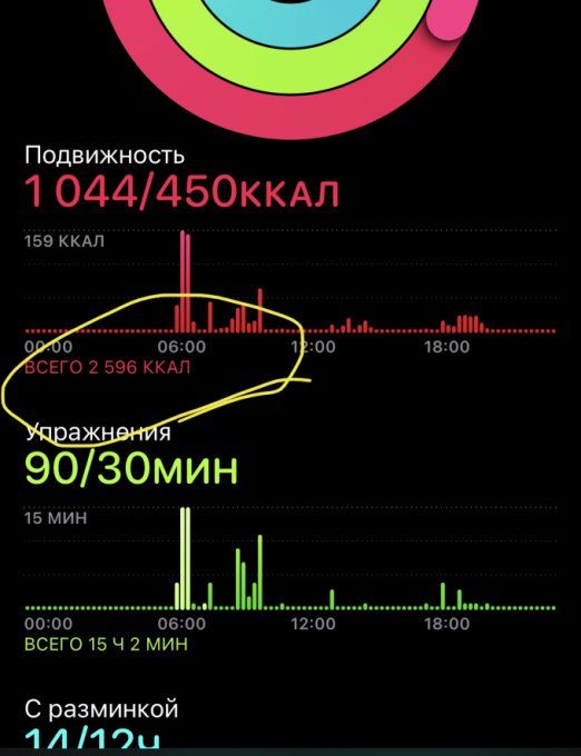 Ной, у меня знаете какой расход умные часы показывают? 😂😂 за вчерашний день 2500 кКал и это на мои 65 кг. Я с их точки зрения могу на 2200 худеть. А у меня поддержка 1800 😂