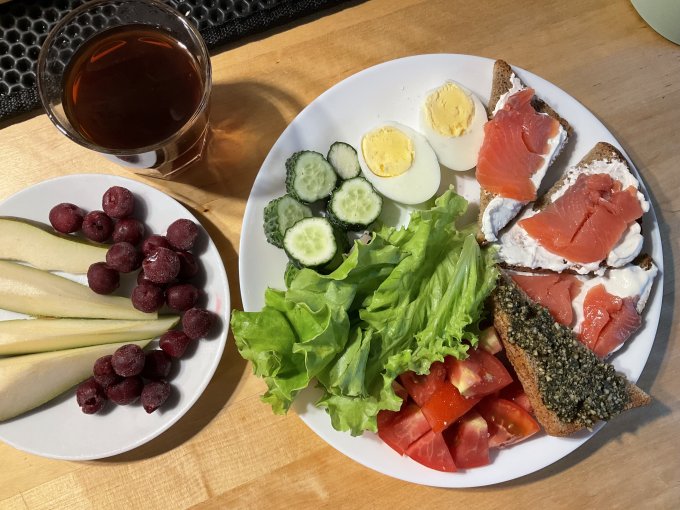 Планировала сходить в кафе на завтрак. У нас проходит фестиваль завтраков и все ближайшие кафе стараются предложить что-то оригинальное. Но у меня видимо уже деформация предпочтений произошла. Соскучилась по вареным яйцам вкрутую! Сварила себе яйцо дома. Остатки форели и песто доела. Довольна😊