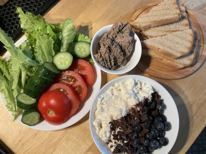 На обед съела только салат с кусочком пиццы. Есть не хотелось. Пришлось доедать все на ужин.