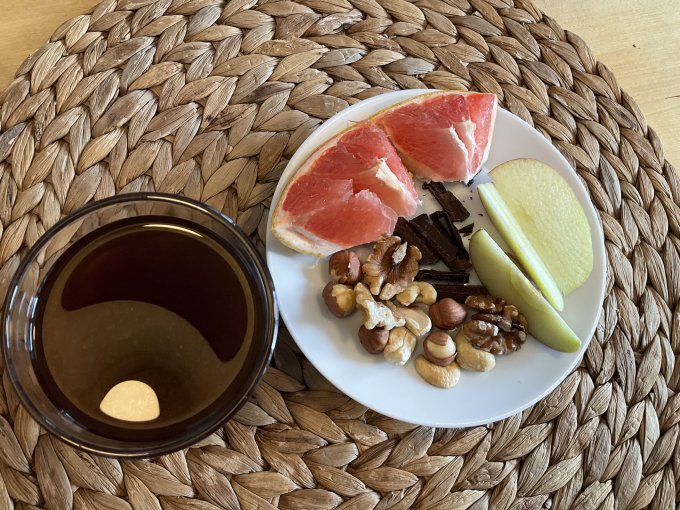 Сегодня очень сытно. Даже не поместился запланированный хлеб. Углеводов недобрала. Ну и ладно.