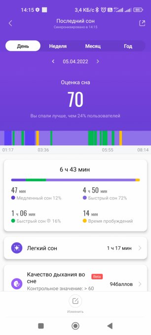 Могло быть и лучше, но довольна хотя бы этим результатом - можно сказать, выхожу на более привычную для себя норму сна, по которой сплю уже много лет. В итоге дневной сонливости сегодня на порядок меньше.