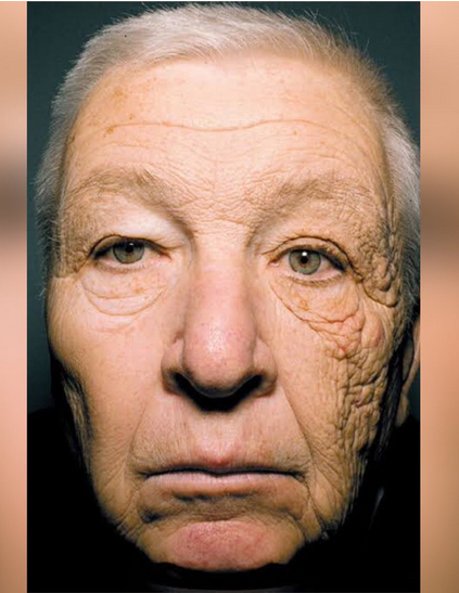 Однажды рассматривала фотографию дальнобойщика, у которого левая сторона лица, на которую чаще попадало солнце, выглядела более старой.