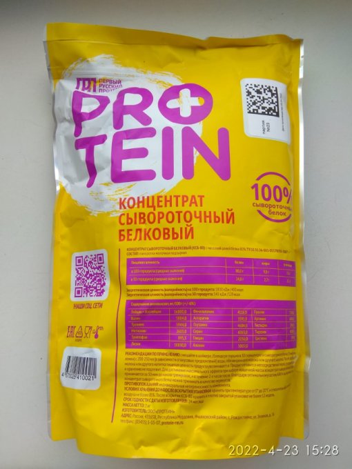 Также сегодня получил долгожданную упаковку отечественного протеина "КСБ-80". Заказывал 12 марта на WB, но поскольку отгрузка была со склада в Казани, доставка, ожидаемо, задержалась. В следующий раз буду покупать через сайт производителя.
