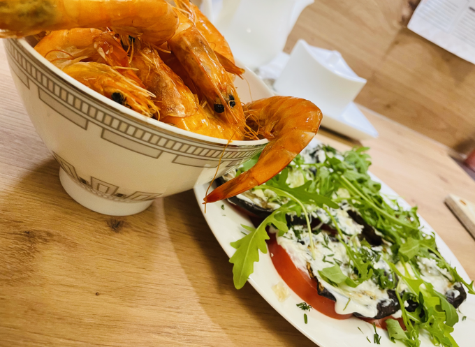Сегодня я сделала потрясающее открытие. Я обожаю жареные баклажаны. В детстве  - любимое блюдо: тоненько порезать, обжарить в большом количестве масла и смазать майонезом с чесноком. Ну сколько калорий в этом блюде можно даже не считать. И это было проблемой - баклажан при жарке впитывает много масла. Тут я вчера зашла в итальяский магазинчик, а там замороженные предварительно нарезанные и обжаренные на огне баклажаны. Написано готовить 4 мин на сковороде без масла. И о чудо!!! Невероятно вкусно, как жареные. Я взала натерла чеснок, смешала с греческим обезжиренным йогуртом, помидорки, зелень. Вкус детства, как же это было вкусно. Я теперь наверно пойду еще упаковки 3 возьму! Так вкусно, много, сытно и только 150 ккал на порцию. С креветками из духовки без масла еще и красиво!Как здорово вкусно и сытно худеть. Кстати свои 1400-1500 ккал снижать не буду пока. Уже ушло грамм 700-800. Значит держу правильный курс!