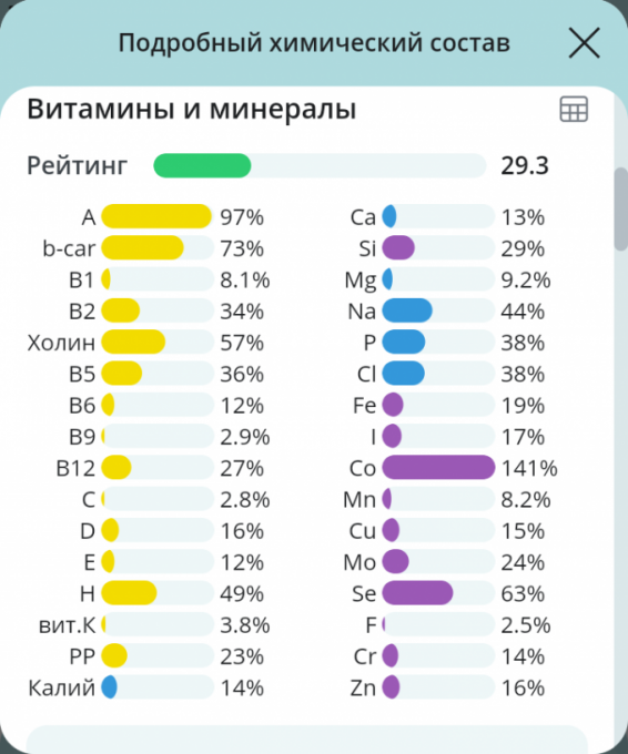 | Вода | 70.5 г | 3.1% | |