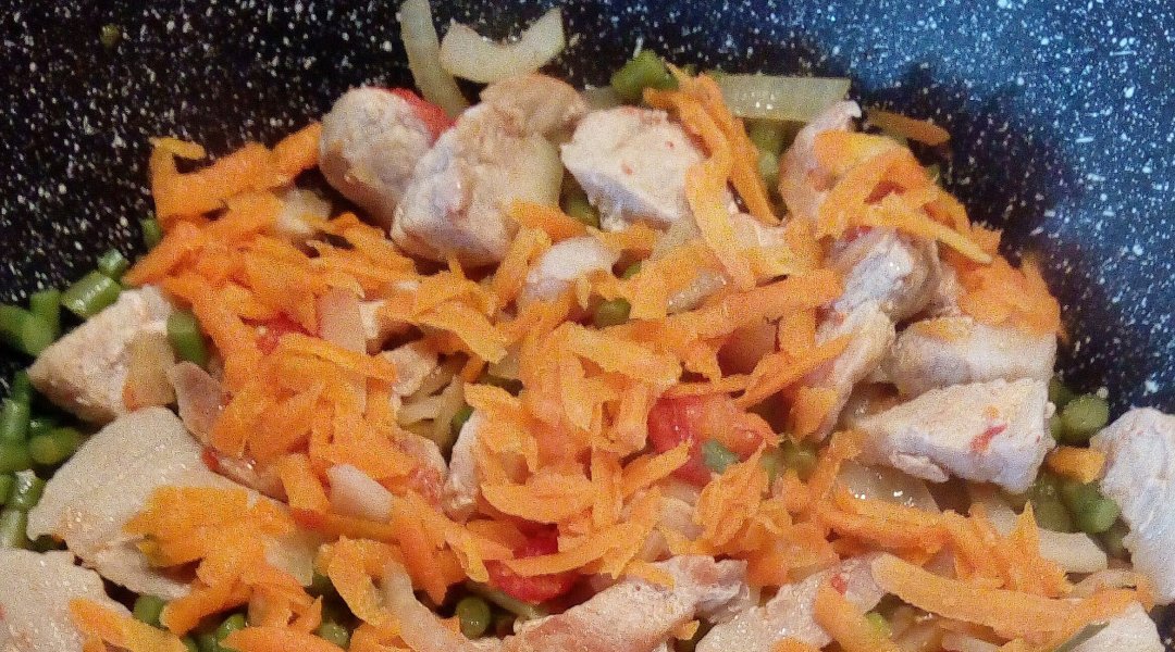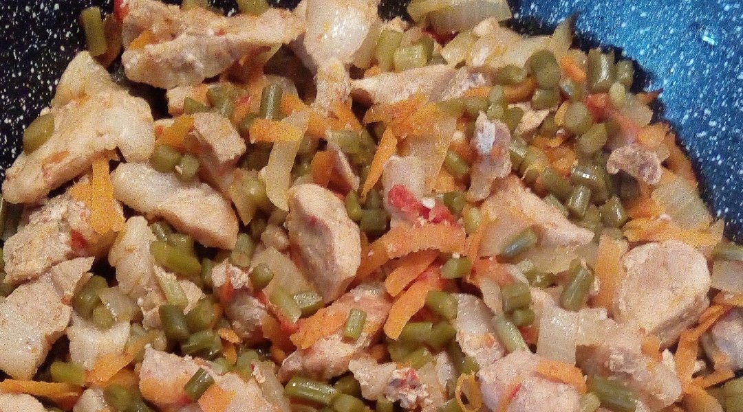 | Свинина со стручковой фасолью/помидор/морковь |