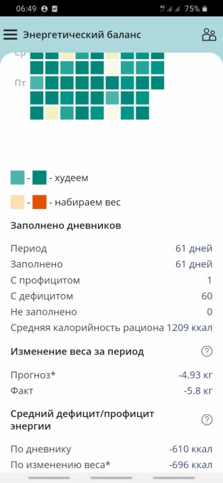 Мне пока так комфортно. Ем не мало, порции хорошие. Думаю, дело в качестве пищи + сезонное снижение аппетита. Как только станет некомфортно — повышу калорийность. В среднем в неделю теряю 600-700г, думаю, это здоровый темп, учитывая возраст и телосложение