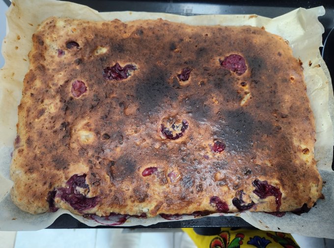 Пирог получился вкусным и калорийным. Съела половину прям горячим. Ох. Первый приём пищи за день, а уже больше дневной нормы.