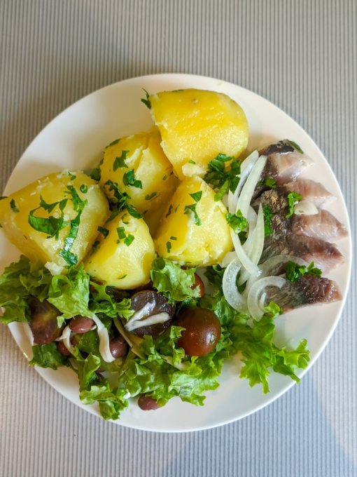 Обед. Картофель с селёдкой. Кстати, мариную сельдь в лимонном🍋 соке, мой личный лайфхак- намного вкуснее и ароматнее. Хотя наверное существует такой рецепт😂