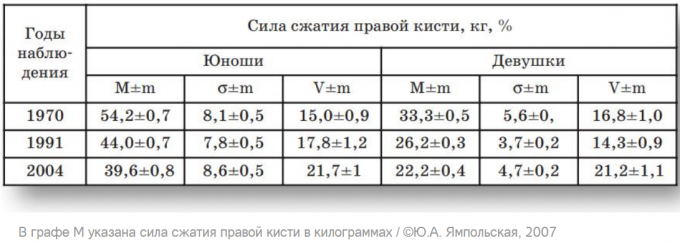 исследования на московских школьниках за 2010 год показали, что большинство учащихся не в силах выполнить нормативы ГТО 1972 года просто из-за физической слабости.