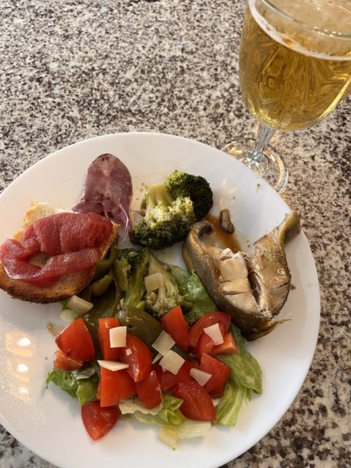 сосиски (я ем половинку) овощи, отварные яйца (на фотке это я уже в