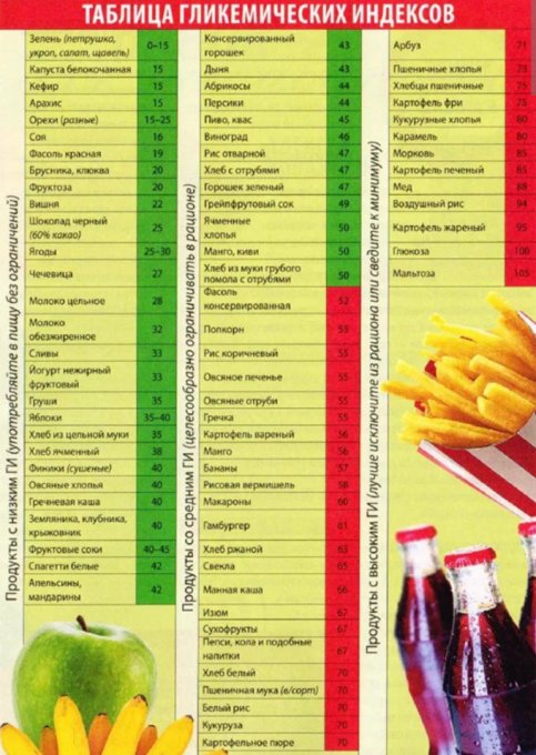 Список продуктов, обладающих высоким и низким гликемическим