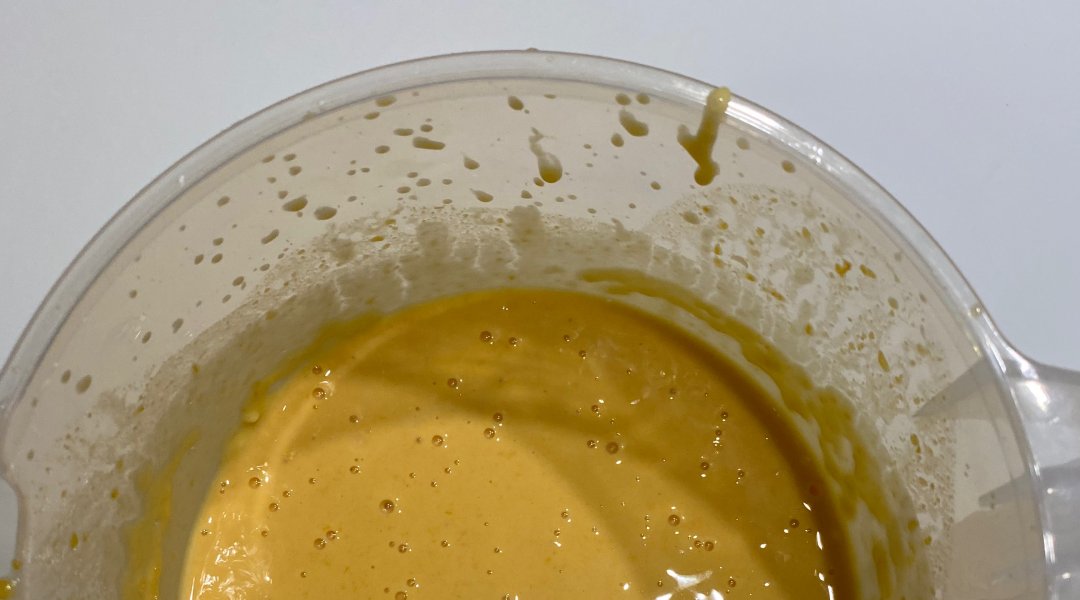 Смешать обе смеси до однородности. Тесто по густоте будет напоминать тесто для блинчиков.