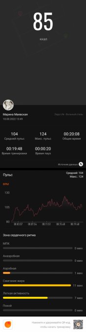 Энергозатраты: 122 ккал