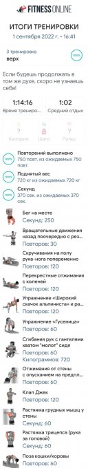 Сегодня очередная тренировка из приложения. Вчера тренировка не было, а ноги сегодня как деревянные. Были мысли пропустить тренировку. Но я всё таки решила размяться. Потихоньку втянулась в рабочий процесс. Час пролетел незаметно.